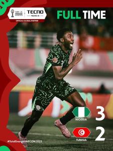 አዲስ አበባ፤ ታህሳስ 18/2018(ኢዜአ)፦ በ35ኛው የአፍሪካ ዋንጫ የምድብ ሶስት ጨዋታ ናይጄሪያ ቱኒዚያን 3 ለ 2 አሸንፋለች። ማምሻውን በፌዝ ስታዲየም በተካሄደው ጨዋታ ቪክቶር ኦሲሜን፣ ዊልፍሬድ ንዲዲ እና አዴሞላ ሉክማን የማሸነፊያ ግቦቹን አስቆጥረዋል። ሞንታሳር ታልቢ በጨዋታ እና አሊ አብዲ በፍጹም ቅጣት ምት ለቱኒዚያ ጎሎቹን ከመረብ ላይ አሳርፈዋል። ጨዋታው አዝናኝ እና ተመጣጣኝ ፉክክር ተደርጎበታል። ውጤቱን ተከትሎ ናይጄሪያ በስድስት ነጥብ ግብጽን ተከትሎ ጥሎ ማለፍ የገባች ሁለተኛዋ ሀገር ሆናለች። የመጀመሪያ ሽንፈቷን ያስተናገደችው ቱኒዚያ በሶስት ነጥብ ሁለተኛ ደረጃን ይዛለች። በዚሁ ምድብ ዛሬ በተደረገ ጨዋታ ዩጋንዳ እና ታንዛንያ አንድ አቻ ተለያይተዋል። የምድብ ሶስት የመጨረሻ መርሃ ግብር ማክሰኞ ታህሳስ 21 ቀን 2018 ዓ.ም ይካሄዳል። ዩጋንዳ ከናይጄሪያ እና ታንዛንያ ከቱኒዚያ ጋር ይጫወታሉ።