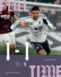 አዲስ አበባ፤ የካቲት 3/2018 (ኢዜአ)፦ በእንግሊዝ ፕሪሚየር ሊግ 26ኛ ሳምንት ጨዋታ ዌስትሃም ዩናይትድ እና ማንችስተር ዩናይትድ ያደረጉት ጨዋታ አንድ አቻ ተጠናቋል። ማምሻውን በለንደን ስታዲየም በተካሄደው ጨዋታ ቶማስ ሶቼክ በ50ኛው ደቂቃ የዌስትሃም ዩናይትድን የመሪነት ግብ አስቆጥሯል። ጨዋታው በዌስትሃም አሸናፊነት ተጠናቀቀ ሲባል ተቀይሮ የገባው ቤንጃሚን ሼስኮ በ96ኛው ደቂቃ ያስቆጠረው ግሩም ግብ ዩናይትድን አቻ አድርጓል። ማንችስተር ዩናይትድ በጨዋታው ብልጫ ቢወስድም ግልጽ የግብ እድሎችን ለመፍጠር ተቸግሯል። ዌስትሃም ዩናይትድ በጥልቀት በመከላከል እና በመልሶ ማጥቃት እንቅስቃሴ ቢጫወትም ውጤቱን ማስጠበቅ አልቻለም። ከአራት ተከታታይ ድሎች በኋላ አቻ የወጣው ማንችስተር ዩናይትድ በ45 ነጥብ አራተኛ ደረጃን ይዟል። ዩናይትድ ከሁለት ዓመታት በኋላ በሊጉ አምስት ተከታታይ ድል የማስመዝገብ ውጥን አልተሳካም። ዌስትሃም ዩናይትድ በ24 ነጥብ 18ኛ ደረጃን ይዞ ወራጅ ቀጠና ውስጥ ይገኛል። ዌስትሃም ከወራጅ ቀጠና ለመውጣት በሚያደርገው ፉክክር ወሳኝ ነጥብ ጥሏል።