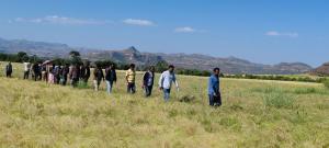 ሰቆጣ ፤ ጥቅምት 8/2018 (ኢዜአ)፡- በሰቆጣ ዝናብ አጠር ግብርና ምርምር ማዕከል የቀረበላቸውን የተሻሻለ የጤፍ ዝርያ በመቀጠም ምርታማነታቸውን ለማሳደግ በትጋት እየሰሩ መሆኑን በዋግ ኽምራ ብሔረሰብ አስተዳደር የፃግብጅ ወረዳ አርሶ አደሮች ገለጹ። በፃግብጅ ወረዳ በምርምር ማዕከሉ የቀረበና በኩታ ገጠም የለማ ''ቁንጮ'' የተሰኘ የጤፍ ዝርያ እንዲሁም የማሽላ ሰብል ዛሬ በመስክ ተጎብኝቷል። በወረዳው የአሪሸርወ ቀበሌ አርሶ አደር አወጣ ብርሃኑ በወቅቱ በተለይ ለኢዜአ እንደተናገሩት፤ በምርምር ማዕከሉ የቀረበላቸው ''ቁንጮ'' የተሰኘ የጤፍ ዝርያን በአንድ ሄክታር መሬት አልምተዋል። ካሁን ቀደም በአካባቢ ዝርያ በሄክታር ከ2 ኩንታል ያልበለጠ ምርት ያገኙ እንደነበር አውስተው፤ በመኸሩ ወቅት የተሻሻለው የ''ቁንጮ'' ዝርያን ማዳበሪያ ተጠቅመው መልማታቸውንና ከዚህም ከ10 ኩንታል ያላነሰ ምርት እንደሚጠብቁ ተናግረዋል። አሁን ላይ የሰብሉ ቁመና በጥሩ እድገት ላይ እንደሚገኝ ጠቁመው፤ ምርታማነታቸውን ይበልጥ ለማሳደግ በመንከባከብ ተግተው እየሰሩ መሆኑን ገልጸዋል። አርሶ አደር ወልደስለሴ ግርማ በበኩላቸው እንዳሉት፤ ከማዕከሉ ባገኙት የተሻሻለ የጤፍ ዝርያ ሩብ ሄክታር መሬት ማልማት ችለዋል። አካባቢያችን ዝናብ አጠር በመሆኑ ቀደም ሲል በልፋታቸው ልክ ምርት እንደማያገኙ አስታውሰው፤ በምርምር ማዕከሉ የቀረበው ዝርያ ችግርን በመቋቋም የተሻለ ምርት እንደሚስጥ ከባለሙያ ትምህርት ወስደው ምርታማነትን ለማሳደግ ጠንክረው እየሰሩ መሆኑን ተናግረዋል። በማዕከሉ የቀረበላቸው የ"ቁንጮ" ጤፍ ዝርያ የተሻለ ምርት በማስገኘት የምግብ ዋስትናን ለማረጋገጥ እንደሚያገዝ ከባለሙያ ተረድተው በማልማት ላይ እንደሚገኙ የገለጹት ሌላው አርሶ አደር ሲሳይ አማረ ናቸው። በማዕከሉ የምጣኔ ሃብትና ግብርና ስርፀት ተመራማሪ አደመ ምህረቱ እንደገለጹት፤ ማዕከሉ ስነ ምህዳርን መሰረት ያደረጉ የቁንጮ ጤፍና ማሽላን ጨምሮ የየተሻሻሉ የሰብል ዝርያዎችን ለአርሶ አደሮች እየቀረበ ይገኛል። በብሔረሰብ አስተዳደሩ ዝናብ አጠር በመሆኑ በአነስተኛ የዝናብ ስርጭት ፈጥነው የሚደርሱ ዝርያዎች ሲቀርቡ እንደቆዩ አውስተው፤ በፃግብጅ ወረዳም ''ቁንጮ'' የተሰኘ የጤፍ ዝርያ የማስፋፋት ስራ እየተከናወነ መሆኑን አስረድተዋል። በዚህም ማዕከሉ ባደረገው ድጋፍ በወረዳው አሪሸርዋ ቀበሌ 30 አርሶ አደሮች የተሳተፉበት 10 ሄክታር መሬት ላይ በኩታ ገጠም ዝርያውን ማልማት መቻሉን ተናግረዋል። ማዕከሉ በአካባቢው የሚስተዋለውን የምግብ ዋስትና እና የስርዓተ ምግብ እጥረት ለማቃለል የተሻሻሉ የሰብል ዝርያዎችን ለአርሶ አደሮች ለማቅረብ በትኩረት እየተሰራ ነው ብለዋል። ምርምር ማዕከሉ ምርትና ምርታማነት ለማሳደግ እያከናወናቸው ያሉት ተግባራት የሚበረታቱ መሆኑን የገለጹት ደግሞ የብሔረሰብ አስተዳደሩ ግብርና መምሪያ ሃላፊ አቶ አዲስ ወልዴ ናቸው። የምግብ ዋስትናን ችግር ለማቃለል ትኩረት ተደርጎ እየተሰራ መሆኑን አንሰተው፤ የተሻሻሉ የሰብል ዝርያዎች ለአርሶ አደሩ የማድረስ ተግባር በመከናወን ላይ እንደሚገኝ ተናገረዋልል። በጉብኝቱ ላይ በየደረጃው የሚገኙ የብሔረሰብ አስተዳደሩ አመራሮች፣ ተመራማሪዎችና በልማቱ እየተሳተፉ የሚገኙ አርሶ አደሮች ተሳትፈዋል።