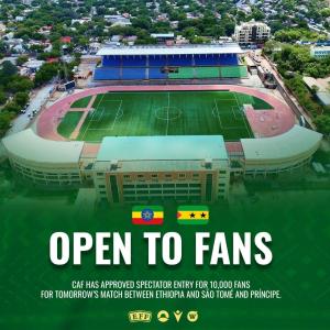 ካፍ የኢትዮጵያ እና የሳኦቶሜና ፕሪንሲፔ ጨዋታን 10 ሺህ ተመልካች ስታዲየም ተገኝቶ እንዲከታተለው ወሰነ