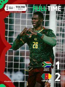 አዲስ አበባ፤ ታህሳስ 26/2018 (ኢዜአ)፦ በ35ኛው የአፍሪካ ዋንጫ ተጠባቂ የጥሎ ማለፍ መርሃ ግብር ካሜሮን ደቡብ አፍሪካን 2 ለ 1 አሸንፋለች። ማምሻውን በአል- መዲና ስታዲየም በተደረገው ጨዋታ ጁኒየር ቻማዱ በ34ኛው እና ክርስቲያን ኮፋኔ በ47ኛው ደቂቃ ላይ የማሸነፊያ ግቦቹን አስቆጥረዋል። ኤቪደንስ ማክጎፓ በ88ኛው ደቂቃ ለደቡብ አፍሪካ ብቸኛውን ግብ ከመረብ ላይ አሳርፏል። በጨዋታው አዝናኝ እና ተመጣጣኝ ፋክክር ለመመልከት ተችሏል። ድሉን ተከትሎ የአምስት ጊዜ የአፍሪካ ዋንጫ ባለቤት ካሜሮን ሩብ ፍጻሜውን ተቀላቅላለች። በሁለቱ ሀገራት የእርስ በእርስ ግንኙነት ታሪክ ካሜሮን በደቡብ አፍሪካ ላይ የመጀመሪያ ድሏን አስመዝግባለች። ካሜሮን በሩብ ፍጻሜው ከሞሮኮ ጋር የምታደርገው ጨዋታ ከወዲሁ ተጠባቂ ነው። አዘጋጇ ሞሮኮ ዛሬ ከታንዛንያ ጋር ባደረገችው የጥሎ ማለፍ ጨዋታ 1 ለ 0 በማሸነፍ ሩብ ፍጻሜ ገብታለች።