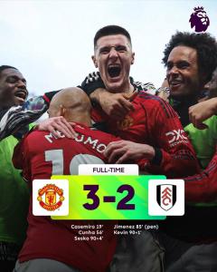 አዲስ አበባ፤ ጥር 24/2018 (ኢዜአ)፡- በ24ኛ ሣምንት የእንግሊዝ ፕሪሚየር ሊግ ማንችስተር ዩናይትድ ፉልሃምን 3 ለ 2 በመርታት ደረጃውን ከነበረበት ወደ አራተኛ ከፍ ያደረገ ሲሆን ሶስተኛ ተከታታይ ድሉንም አስመዝግቧል። የማንችስትር ዩናይትድን ግቦች ካስሚሮ በ19ኛው፣ ኩና በ56ኛው እንዲሁም ሴስኮ በ94ኛው ደቂቃ ከመረብ አሳርፈዋል። በአንጻሩ ሂምኔዝ በ85ኛው ደቂቃ በፍጹም ቅጣት ምት እና ኬቪን በ92ኛው ደቂቃ በጨዋታ ለፉልሃም ግቦችን አስቆጥረዋል። ውጤቱን ተከትሎም ማንችስተር ዩናይትድ በ41 ነጥብ አራተኛ ደረጃን ዳግም የተረከበ ሲሆን፤ ፉልሃም በ34 ነጥብ ስምንተኛ ደረጃ ላይ ተቀምጧል። በሌላ የጨዋታ መርሐ-ግብር ብሬንትፎርድ አስቶንቪላን በሜዳው 1 ለ 0 ሲያሸንፍ፤ ኖቲንግሃም ከክሪስታል ፓላስ አንድ አቻ ተለያይተዋል። #Ethiopian_News_Agency #ኢዜአ