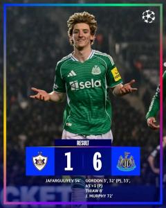 አዲስ አበባ፤ የካቲት 11 /2018(ኢዜአ)፦ በአውሮፓ ሻምፒዮንስ ሊግ የጥሎ ማለፍ ማጣሪያ መርሐ-ግብር ኒውካስትል ዩናይትድ ካራባግን 6 ለ 1 አሸንፏል። ማምሻውን በቶፊቅ ባህራሞቭ ስታዲየም በተደረገው ጨዋታ አንቶኒ ጎርደን ሁለት በጨዋታ እና ሁለት በፍጹም ምት በአጠቃላይ አራት ጎሎችን አስቆጥሯል። ማሊክ ታው እና ጃኮብ መርፊ ቀሪዎቹን ግቦች ከመረብ ላይ አሳርፈዋል። ኤልቪን ጃፋርኩሊዬቭ ለካራባግ ብቸኛውን ጎል አስቆጥሯል። ኒውካስትል ዩናይትድ በጨዋታው ላይ ከፍተኛ ብልጫ ወስዷል። አራት ግቦችን ያስቆጠረው አንቶኒ ጎርደን የጨዋታው ኮከብ ሆኖ ተመርጧል። ውጤቱን ተከትሎ ኒውካስትል ዩናይትድ ጥሎ ማለፉ የመቀላቀል እድሉን የበለጠ አስፍቷል። የሁለቱ ቡድኖች የመልስ ጨዋታ በቀጣዩ ሳምንት ይካሄዳል።