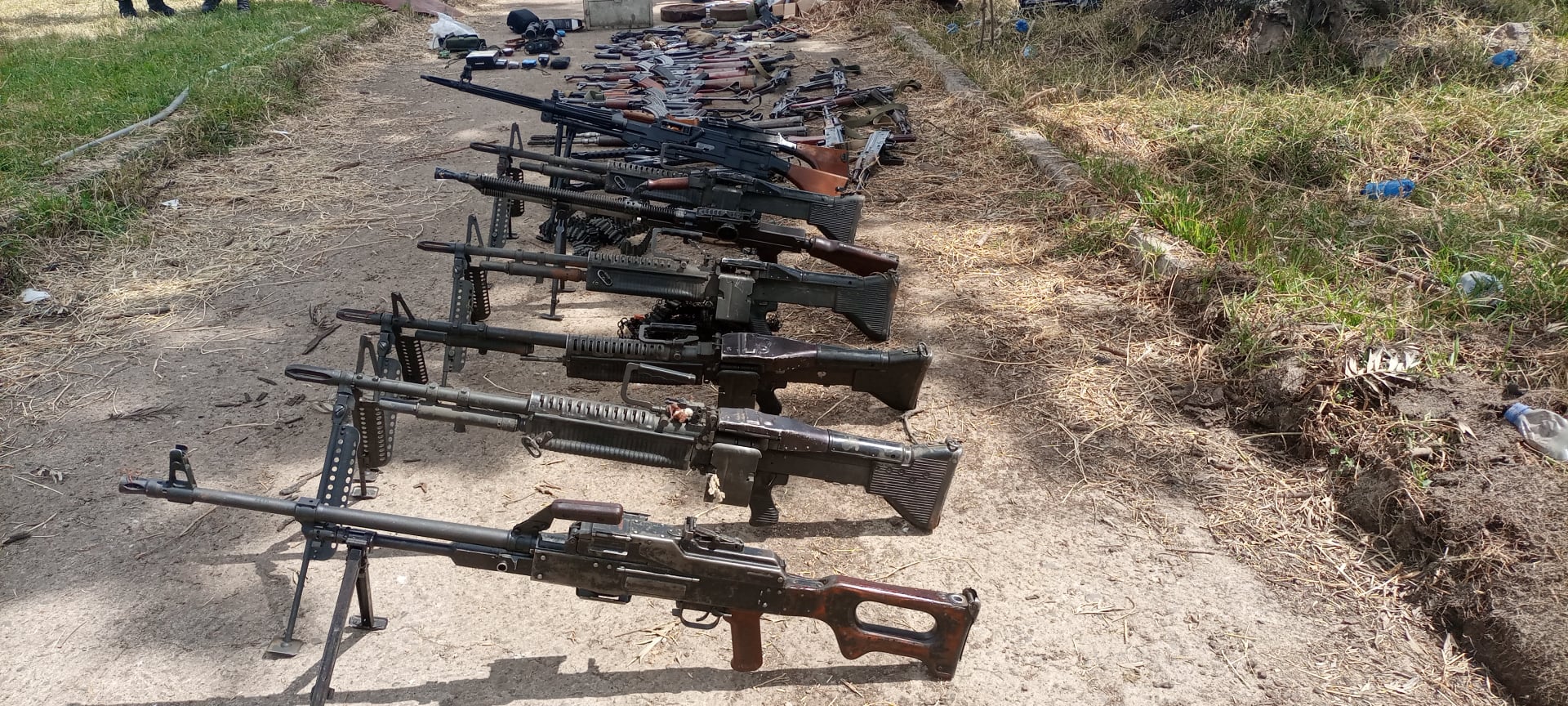 ከሀዲ ጁንታው የህውሃት ቡድን እንደ ሀገር ብጥብጥና ቀውስ ለማድረስ አልሞ ረጅም አመታት በመዘጋጀት ጥቃት ማድረስ ከጀመረበት እለት አንስቶ በተደረጉ ፍተሻዎችና ብርበራዎች ከፍተኛ ቁጥር ያለው የተለያዩ የጦርመሳሪያዎች መያዛቸው ይታወቃል፡፡