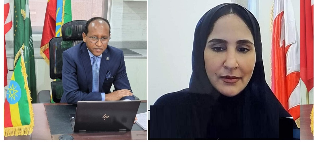 አዲስ አበባ ግንቦት 24/2013/ ኢዜአ/ በባህሬን የኢፌዴሪ የቆንስላ ጽ/ቤት መሪ የሆኑት አምባሳደር ጀማል በከር አዲስ ከተሾሙት በባህሬን ውጭ ጉዳይ ሚኒስቴር የአፍሮ ኤዥያ ዳይሬክቶሬት ዳይሬክተር ከሆኑት አምባሳደር ፋጥማ አብደላ አልዴን ጋር በወቅታዊ ጉዳዮች ዙሪያ በበየነ-መረብ ውይይ አካሂደዋል፡፡