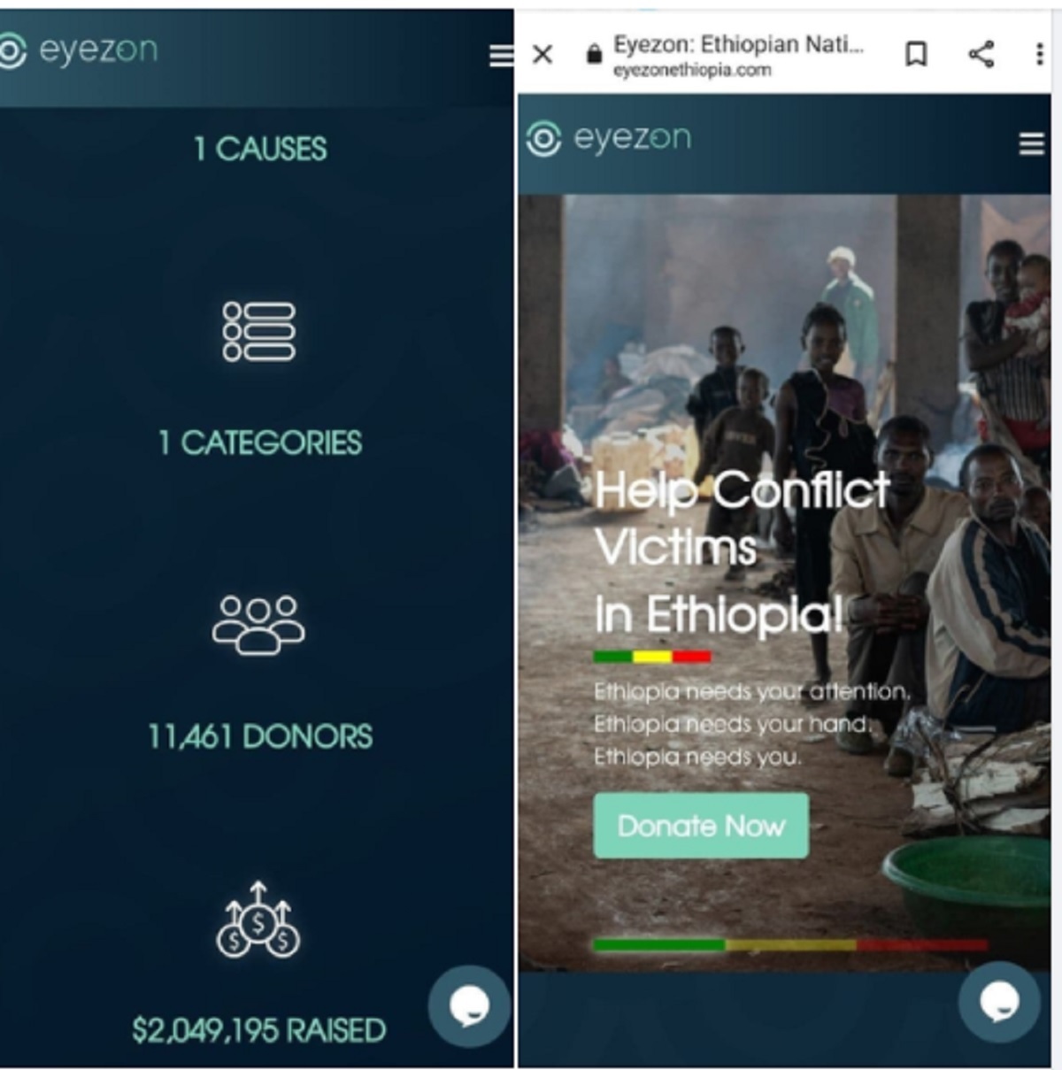 ህዳር 18/2014 (ኢዜአ) ዳያስፖራው በ'eyezonethiopia.com' መተግበሪያ አማካኝነት በሃገር ቤት አሸባሪው ህወሓት በከፈተው ጦርነት ለተጎዱ ወገኖች ያሰባሰበው ገንዘብ ከ2 ሚሊዮን ዶላር በላይ መድረሱን የኢትዮጵያ ዳያስፖራ ኤጀንሲ አስታወቀ።