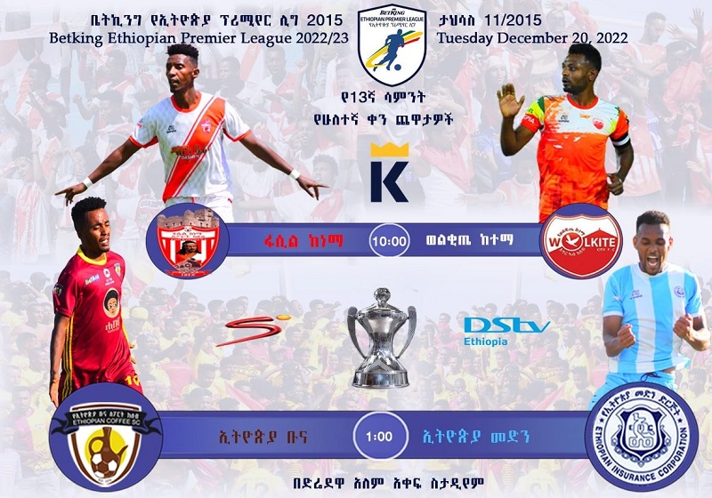አዲስ አበባ (ኢዜአ) ታህሳስ 11/2015 ቤትኪንግ የኢትዮጵያ ፕሪሚየር ሊግ 13ኛ ሳምንት መርሐ-ግብር የሊጉ መሪ ኢትዮጵያ መድን ከኢትዮጵያ ቡና ዛሬ የሚያደርጉት ጨዋታ ይጠበቃል።