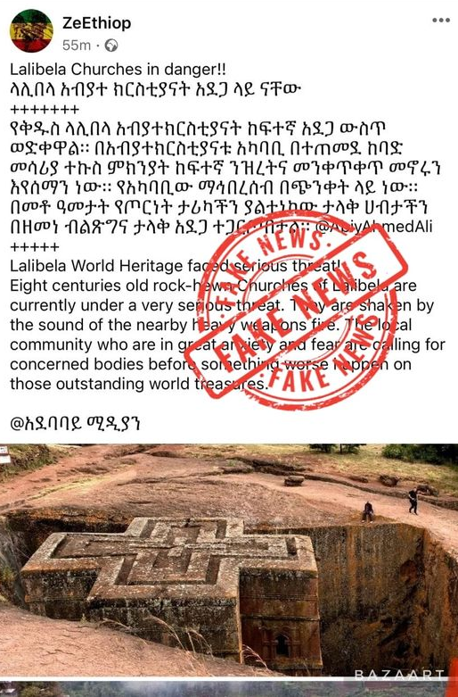 አሁንም "የቅዱስ ላሊበላ አብያተክርስቲያናት ከፍተኛ አደጋ ላይ ናቸው" በሚል አንድ ሚሊዮን ተከታዮች ያሉት ZeEthiop የተሰኘ የፌስቡክ ገጽ ትናንት መረጃ አጋርቷል።