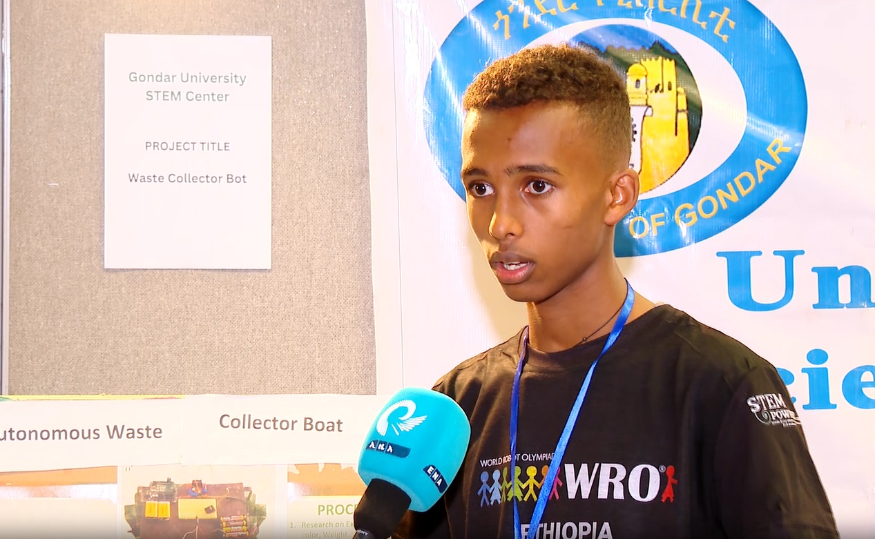 ከጎንደር ዩኒቨርሲቲ ስቲም ማዕከል የ11ኛ ክፍል ተማሪዎች ዘአማኑኤል ደረጄ እና ጓደኞቹ በውኃ ላይ የሚስተዋልን ቆሻሻ ለማስወገድ የሚያስችል ቴክኖሎጂ ፈጠራ በጥሩ ማሳያነት ይጠቀሳል።