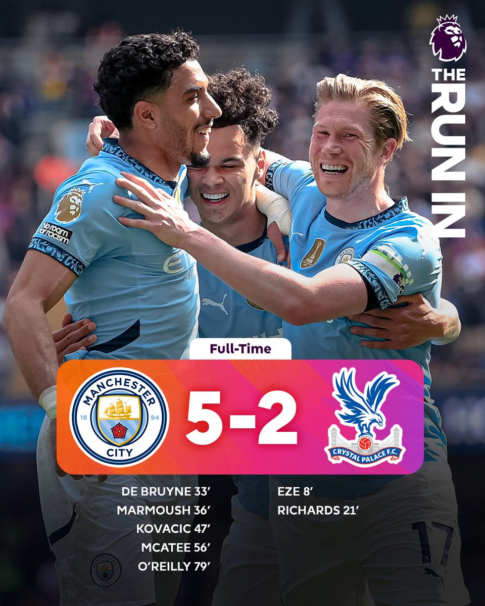 አዲስ አበባ፤ሚያዚያ 4 /2017 (ኢዜአ)፦ በእንግሊዝ ፕሪሚየር ሊግ የ32ኛ ሳምንት መርሃ ግብር ማንችስተር ሲቲ ከመመራት ተነስቶ ክሪስታል ፓላስን 5 ለ 2 አሸንፏል።
