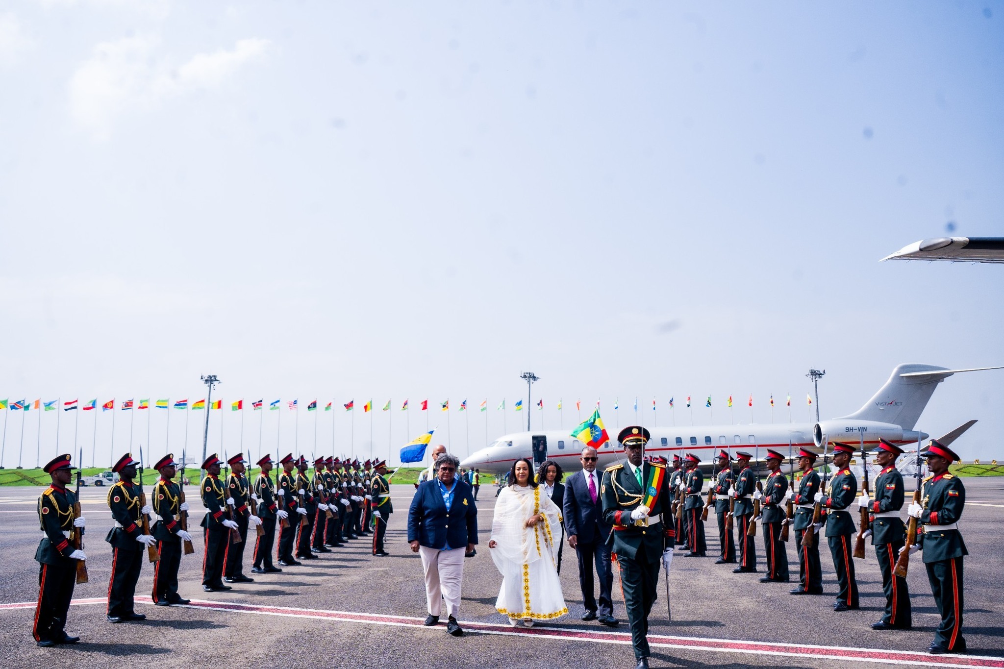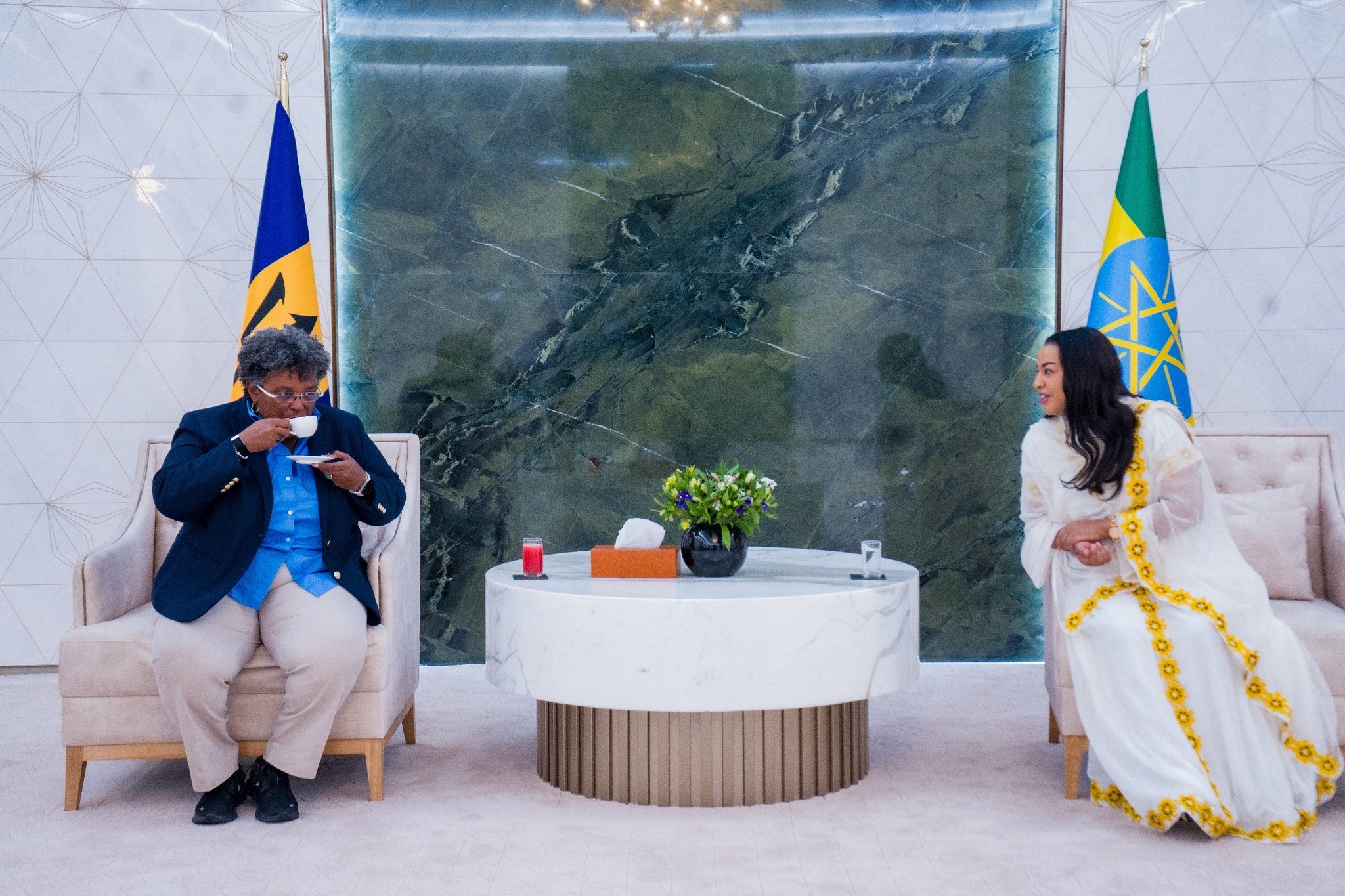 የባርባዶስ ጠቅላይ ሚኒስትር ሚያ አሞር ሞትሊን የሴቶችና ማህበራዊ ጉዳይ ሚኒስትር ኤርጎጌ ተስፋዬ (ዶ/ር) እና የውጭ ጉዳይ ሚኒስትር ዴዔታ አምባሳደር ብርሃኑ ፀጋዬ አቀባበል አድርገውላቸዋል።