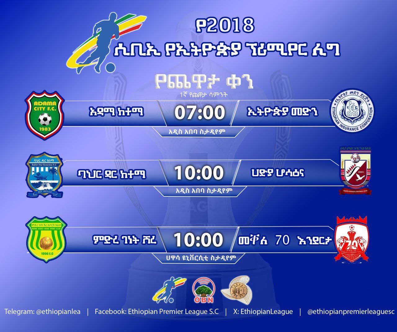 ከነዚህ መርሃ ግብሮች መካከል አዳማ ከተማ እና ኢትዮጵያ መድን ከቀኑ 7 ሰዓት ላይ በአዲስ አበባ የሚያደርጉት ጨዋታ ይገኝበታል።