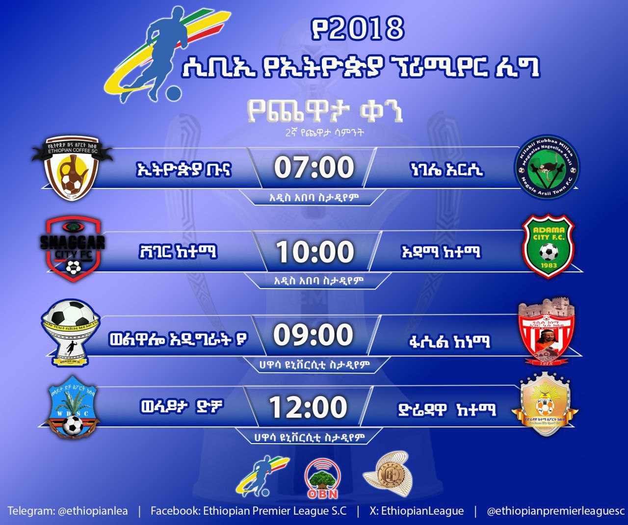 ከቀኑ 10 ሰዓት በአዲስ አበባ ስታዲየም ሸገር ከተማ ከአዳማ ከተማ ይጫወታሉ።