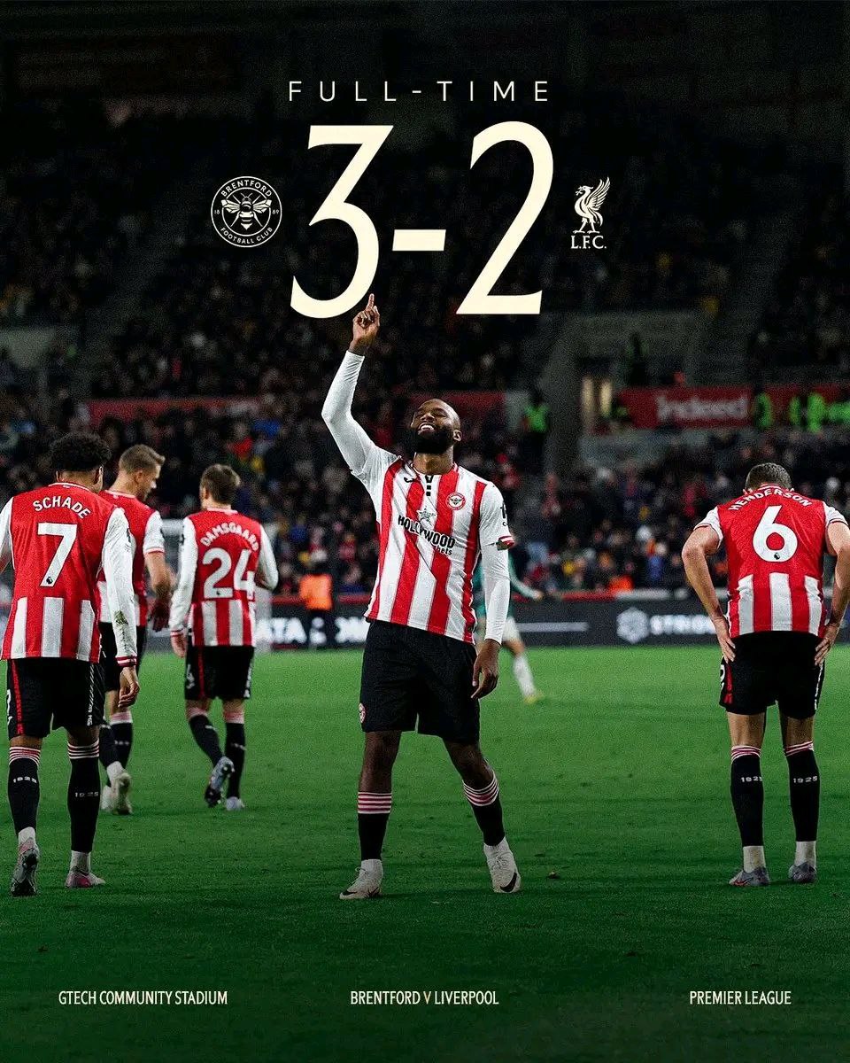 አዲስ አበባ፤ ጥቅምት 15/2018 (ኢዜአ):- በእንግሊዝ ፕሪሚየር ሊግ ዘጠነኛ ሳምንት መርሃ ግብር ብሬንትፎርድ ሊቨርፑልን 3 ለ 2 አሸንፏል።