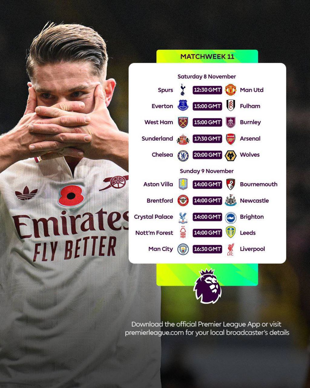አዲስ አበባ፤ ጥቅምት 29/2018(ኢዜአ)፦ የእንግሊዝ ፕሪሚየር ሊግ 11ኛ ሳምንት ዛሬ ይጀመራል።