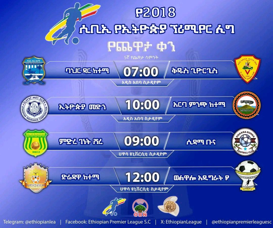 ከቀኑ 7 ሰዓት ባህር ዳር ከተማ ከቅዱስ ጊዮርጊስ በአዲስ አበባ ስታዲየም ይጫወታሉ።