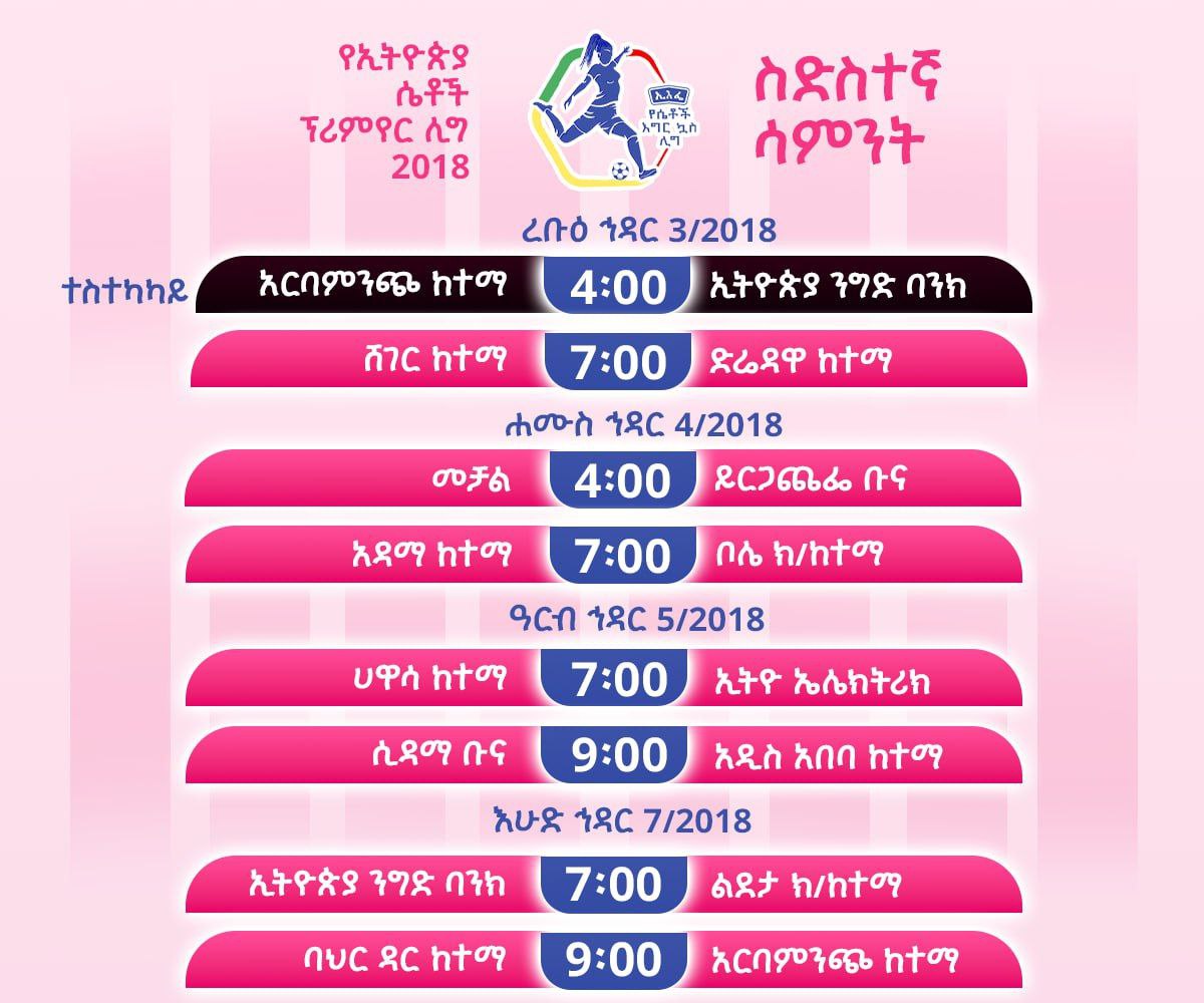 የስድስተኛ ሳምንት መርሃ ግብር እስከ ህዳር 7 ቀን 2018 ዓ.ም ይቆያል።