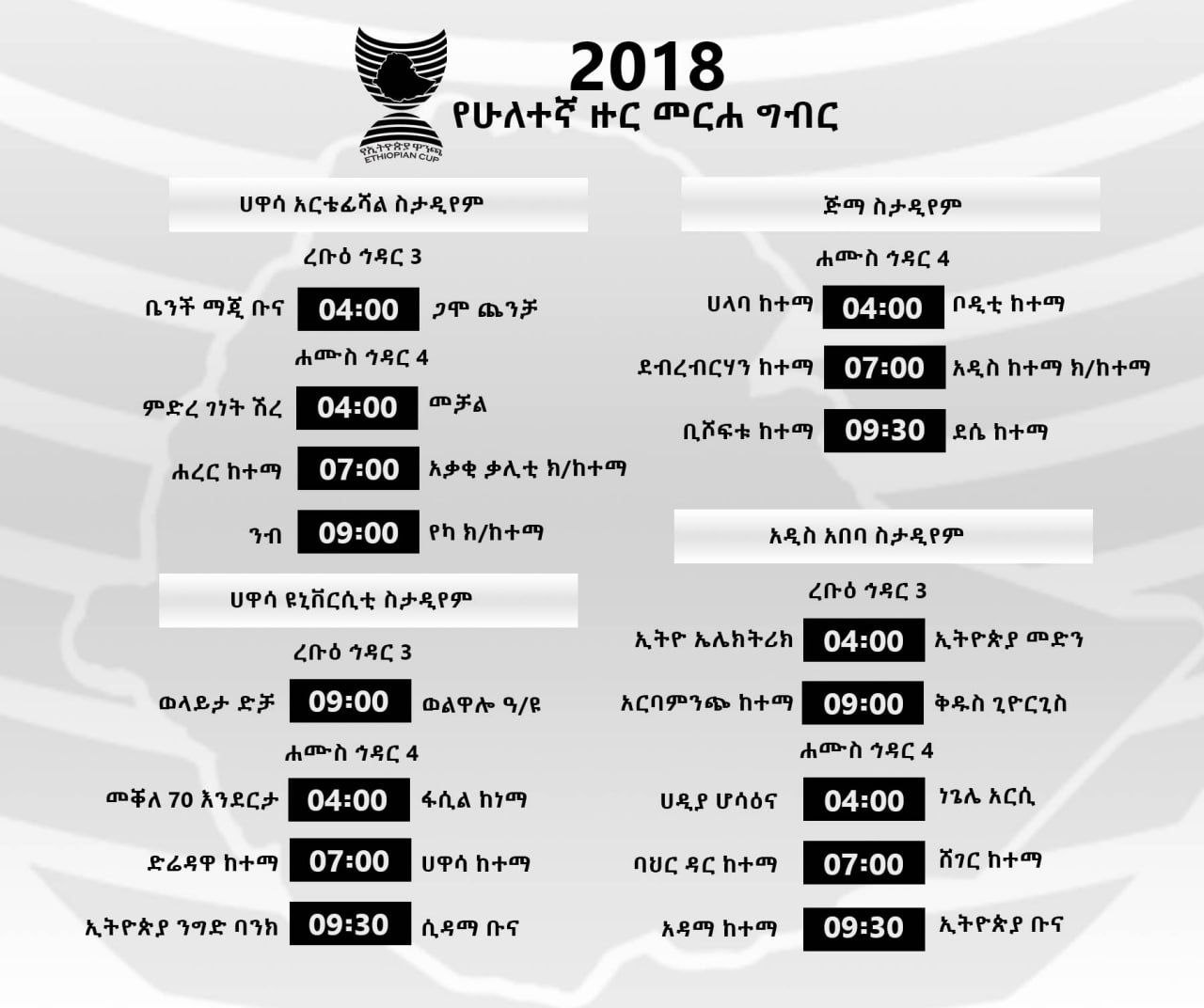 አዲስ አበባ ፤ ህዳር 4/2018(ኢዜአ)፡- በኢትዮጵያ ዋንጫ የሁለተኛ ዙር መርሃ ግብር ዛሬ 12 ጨዋታዎች ይደረጋሉ።
