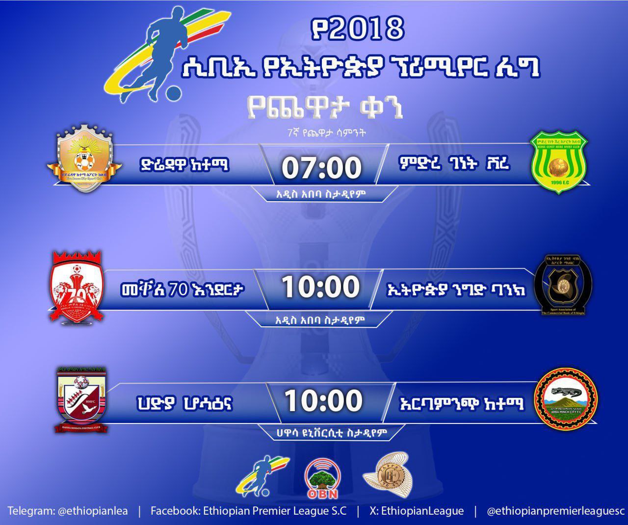 ከቀኑ 7 ሰዓት ድሬዳዋ ከተማ ከምድረገነት ሽሬ በአዲስ አበባ ስታዲየም ይጫወታሉ።