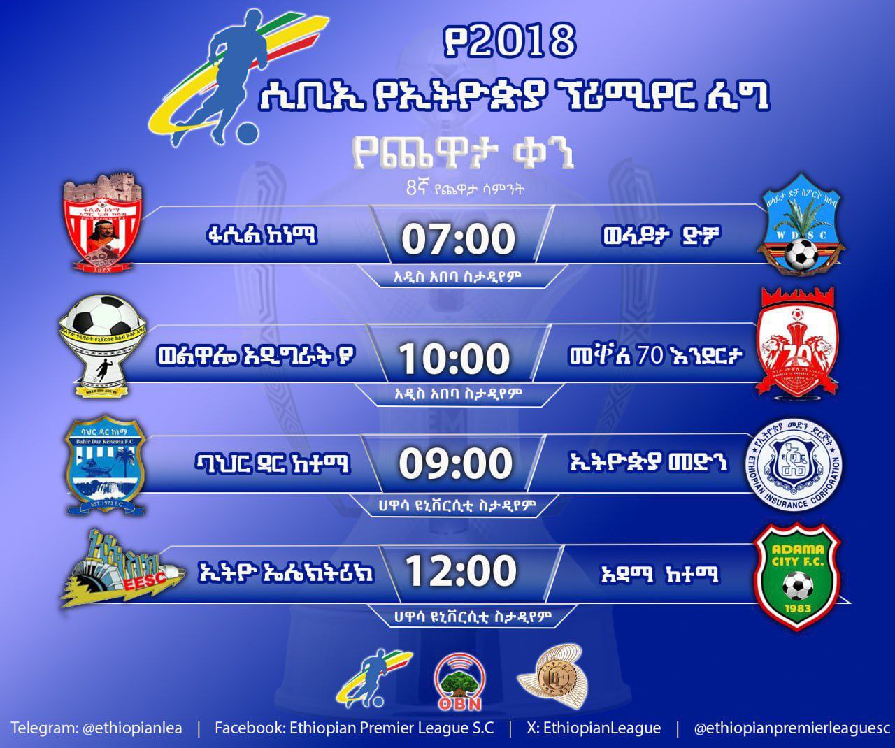 የኢትዮጵያ ፕሪሚየር ሊግ ስምንተኛ ሳምንት ዛሬ ይጀመራል - ኢዜአ አማርኛ