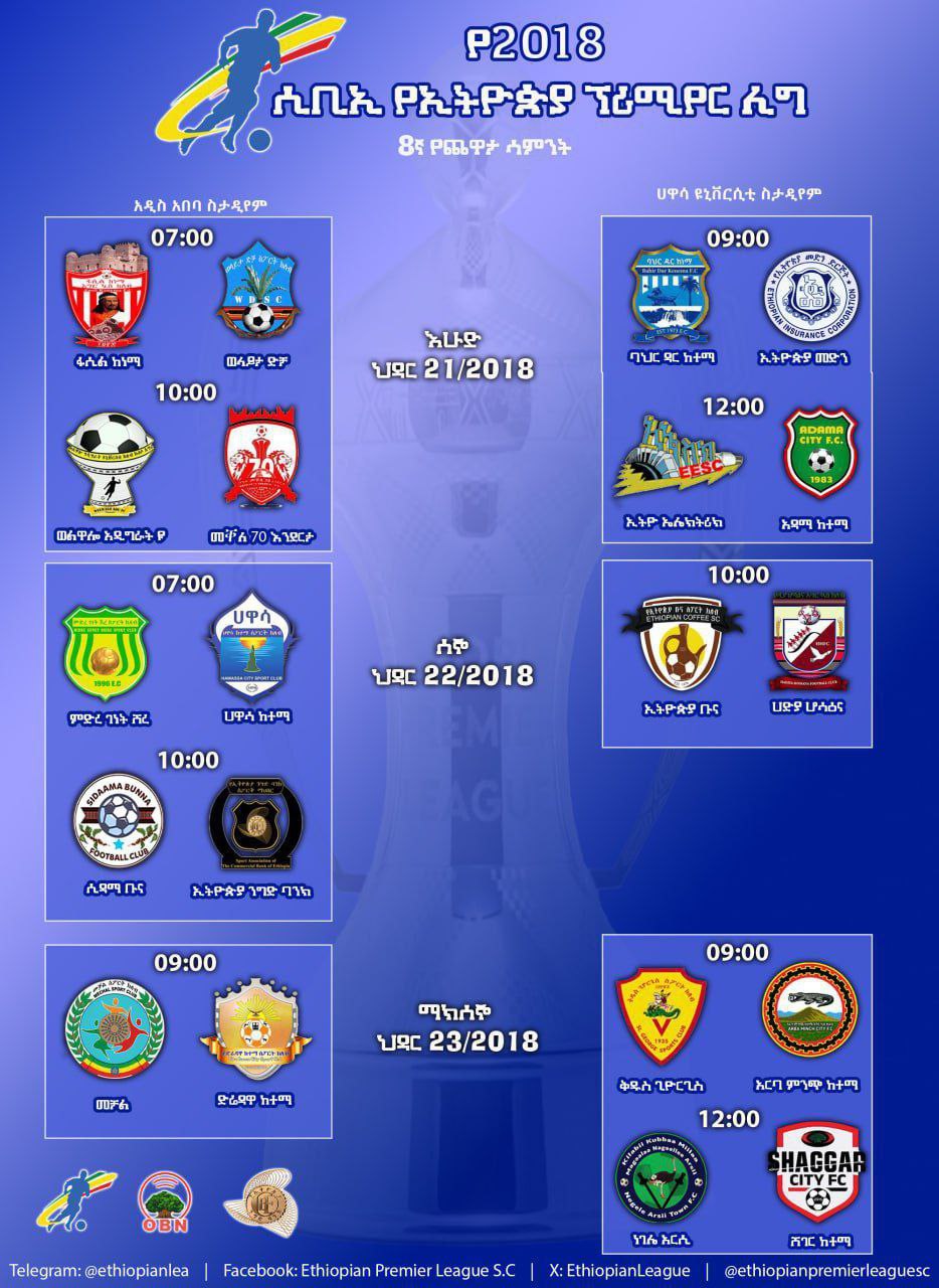 የስምንተኛ ሳምንት መርሃ ግብር እስከ ሕዳር 23 ቀን 2018 ዓ.ም ይቆያል።