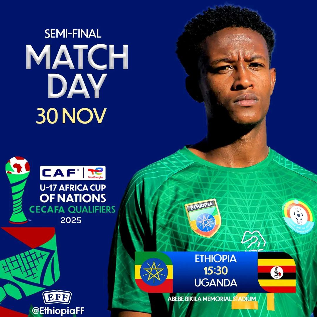አዲስ አበባ፤ ሕዳር 21/2018 (ኢዜአ)፦ የኢትዮጵያ ከ17 ዓመት በታች ብሄራዊ ቡድን በአፍሪካ ዋንጫ የሴካፋ ማጣሪያ ከዩጋንዳ አቻው ጋር የግማሽ ፍጻሜ ጨዋታዋን ዛሬ ያደርጋል።