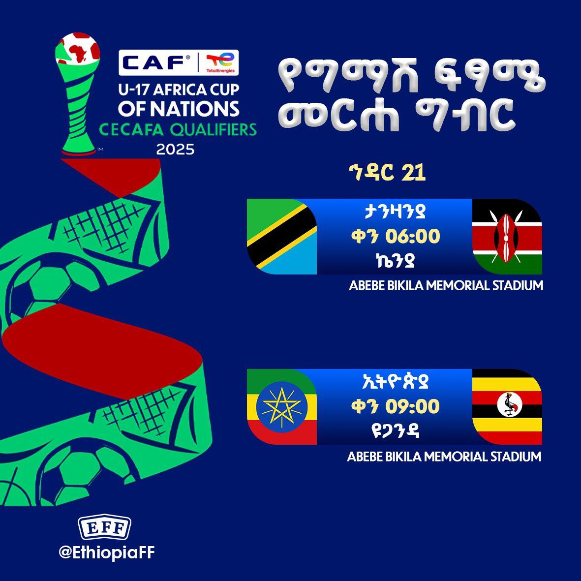 ኢትዮጵያ ከ17 ዓመት በታች የአፍሪካ ዋንጫ ለማለፍ የሚያስችላትን ወሳኝ ጨዋታ ከዩጋንዳ ጋር ታደርጋለች
