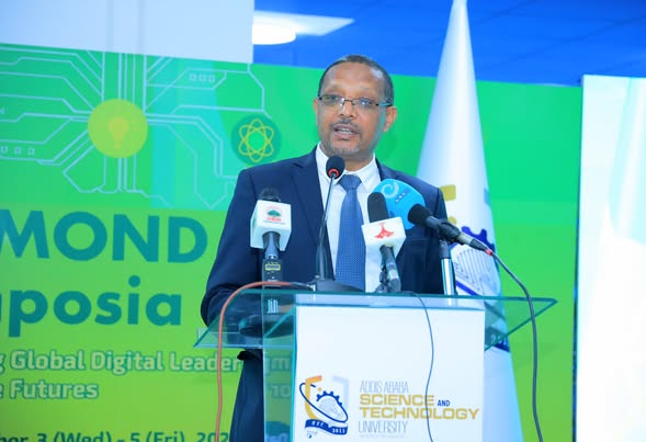 የአዲስ አበባ ሳይንስና ቴክኖሎጂ ዩኒቨርሲቲ ያዘጋጀው የ2025 ዳይመንድ ክለብ ሲምፖዚየም "አካታች ወደፊትን ለመፍጠር ዓለም አቀፍ የዲጂታል አመራር ማጠናከር" በሚል መሪ ሃሳብ ተካሄዷል።