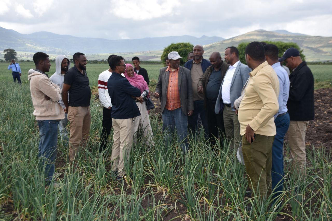 ዶክተር መንግሥቱና ሌሎች ከፍተኛ የክልሉና የዞኑ የሥራ ኃላፊዎች በባሌ ዞን ሲናና ወረዳ በኩታ ገጠም እየለማ የሚገኘውን የነጭ ሽንኩርትና ሌሎች ገበያ ተኮር ምርቶችን ጎብኝቷል።