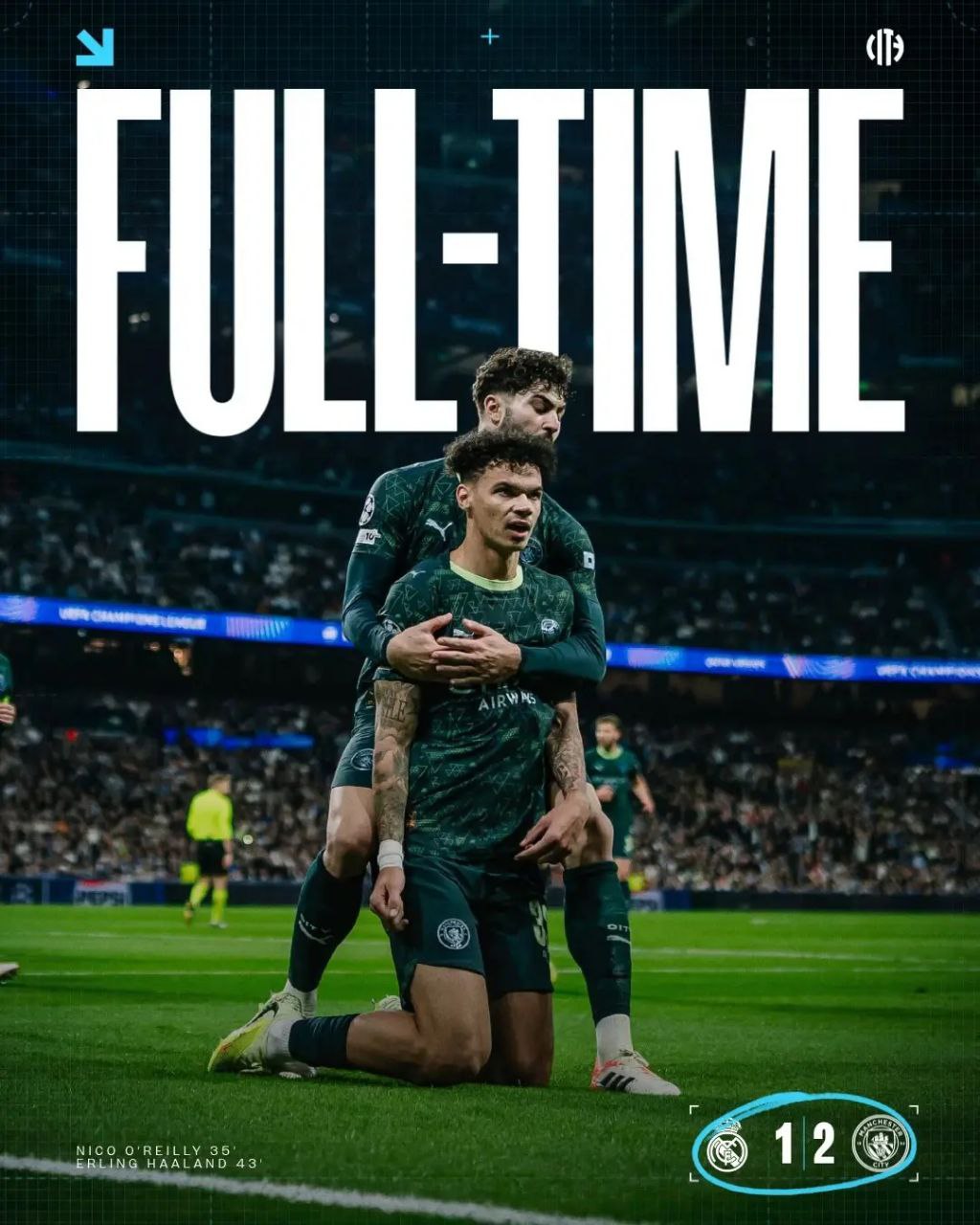 ማምሻውን በሳንቲያጎ ስታዲየም በተደረገው ጨዋታ ኒኮ ኦራይሊ በጨዋታ እና አርሊንግ ሃላንድ በፍጹም ቅጣት ምት የማሸነፊያ ግቦቹን አስቆጥረዋል።