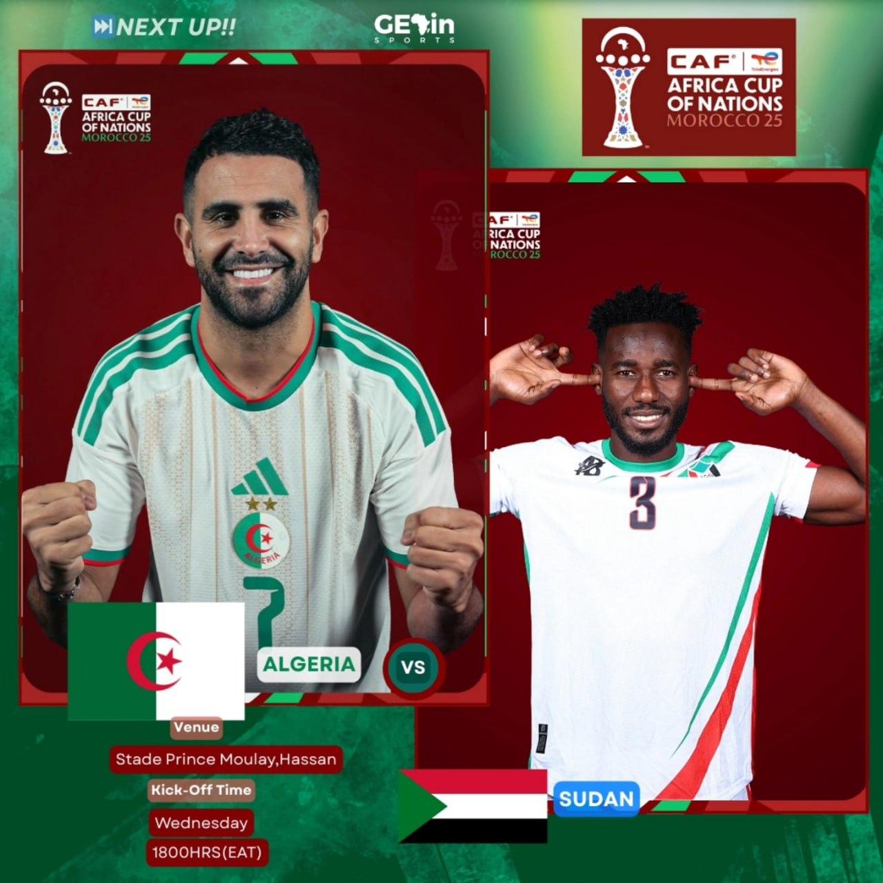 በምድብ አምስት የምስራቅ አፍሪካዋ ሱዳን ከአልጀሪያ ጋር ከምሽቱ 12 ሰዓት ላይ በፕሪንስ ሙላይ አብደላ ስታዲየም ትጫወታለች።