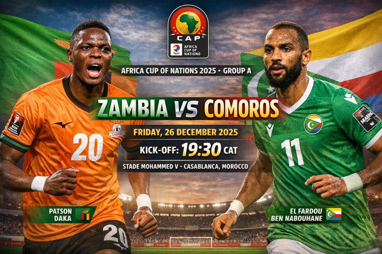 በምድብ አንድ ሌላኛው መርሃ ግብር ዛምቢያ ከኮሞሮስ ምሽት 2 ሰዓት ከ30 ላይ በመሐመድ አምስተኛ ስታዲየም ጨዋታቸውን ያደርጋሉ።