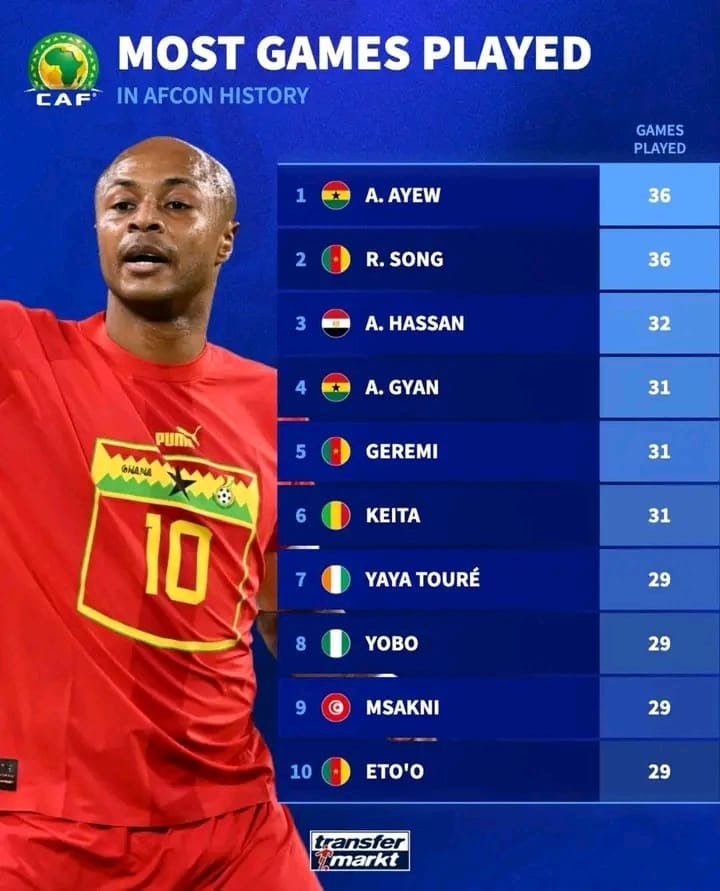 ጋና በ35ኛው የአፍሪካ ዋንጫ አለመሳተፏን ተከትሎ አየው የበርካታ ጊዜ የመሰለፍ ክብረ ወሰን የመስበር እድል አምልጦታል።
