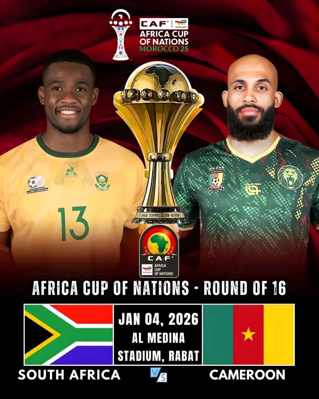 በሌላኛው መርሃ ግብር ምሽት አራት ሰዓት ላይ ደቡብ አፍሪካ ከካሜሮን በአል መዲና ስታዲየም የሚያደርጉት ጨዋታ ተጠባቂ ነው።