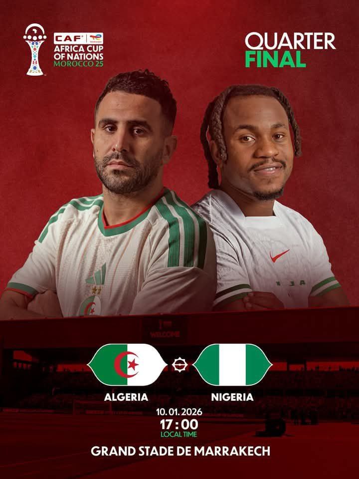 በሌላኛው የሩብ ፍጻሜ መርሃ ግብር አልጄሪያ ከናይጄሪያ ምሽት አንድ ሰዓት ላይ በማራካሽ ስታዲየም ጨዋታቸውን ያደርጋሉ።
