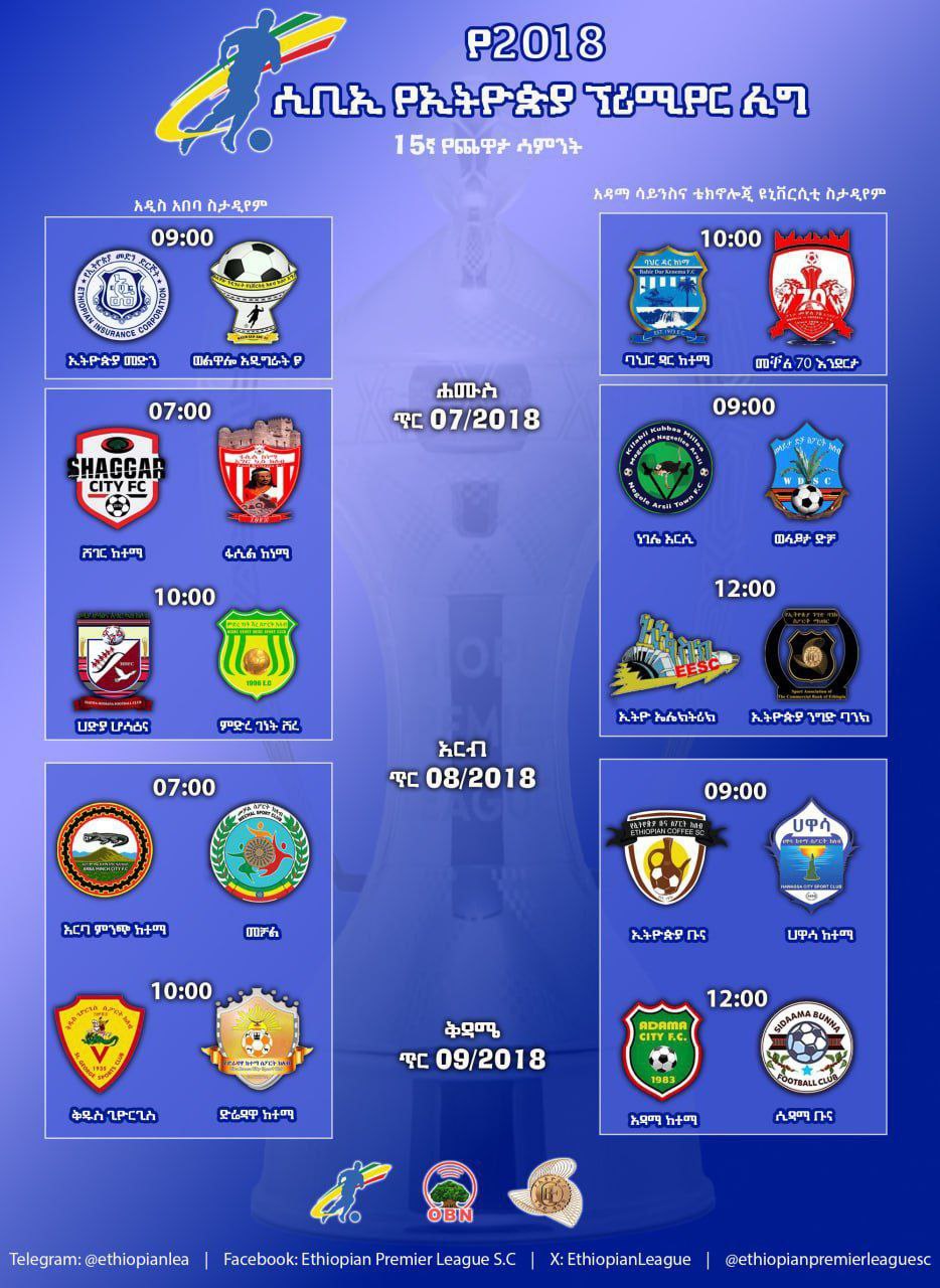 የኢትዮጵያ ፕሪሚየር ሊግ 15ኛ ሳምንት እስከ ጥር 9 ቀን 2018 ዓ.ም ይቆያል።
