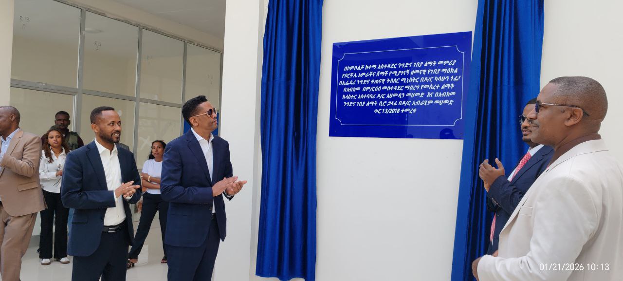 በኮምቦልቻ ከተማ በ120 ሚሊዮን ብር የተገነባው ሁለገብ ዘመናዊ የገበያ ማዕከል የንግድና ቀጣናዊ ትስስር ሚኒስትሩ ካሳሁን ጎፌ (ዶ/ር) እና ሌሎች ከፍተኛ አመራሮች በተገኙበት ተመርቆ ለአገልግሎት በቅቷል።