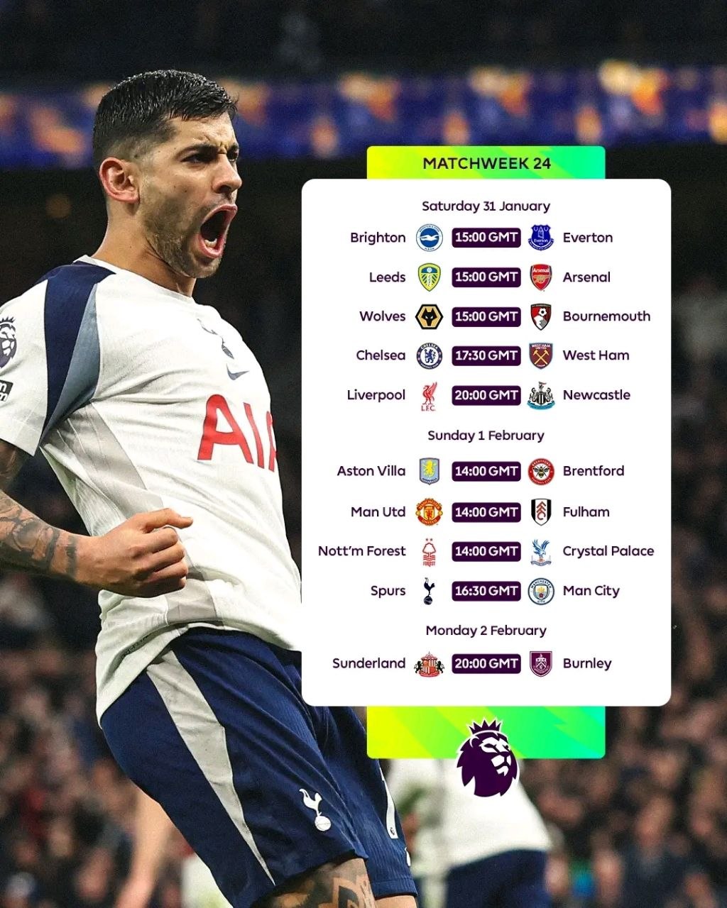 አዲስ አበባ፤ ጥር 23/2018 (ኢዜአ)፦ የእንግሊዝ ፕሪሚየር ሊግ የ24ኛ ሳምንት መርሐ-ግብር ከዛሬ ጀምሮ ይካሄዳል።