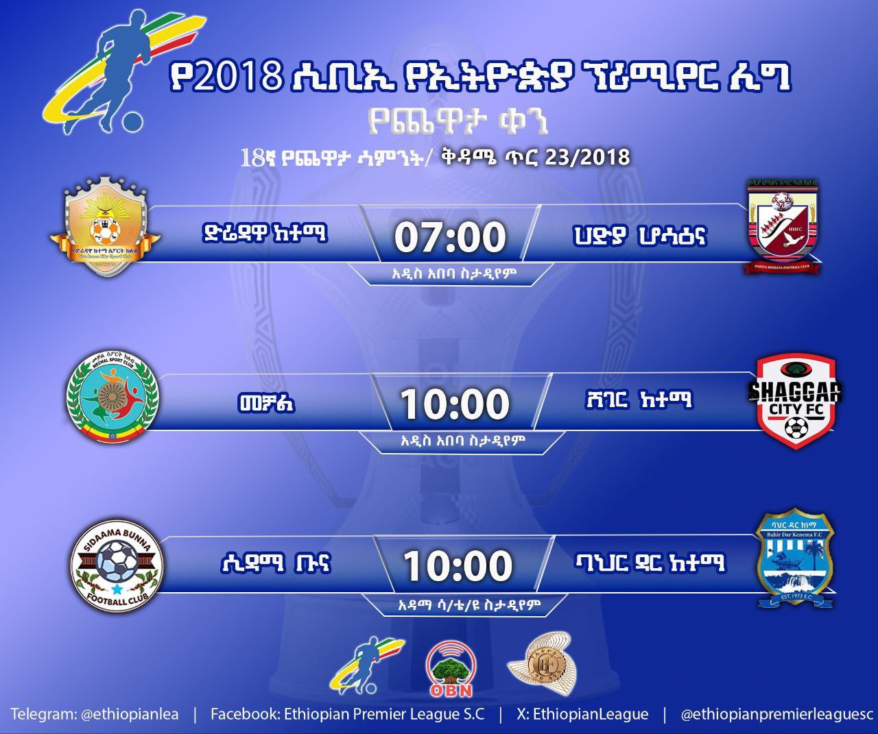 እንዲሁም ድሬዳዋ ከተማ ከሀዲያ ሆሳዕና ከቀኑ 7 ሰዓት በአዲስ አበባ ስታዲየም ጨዋታቸውን ያደርጋሉ።