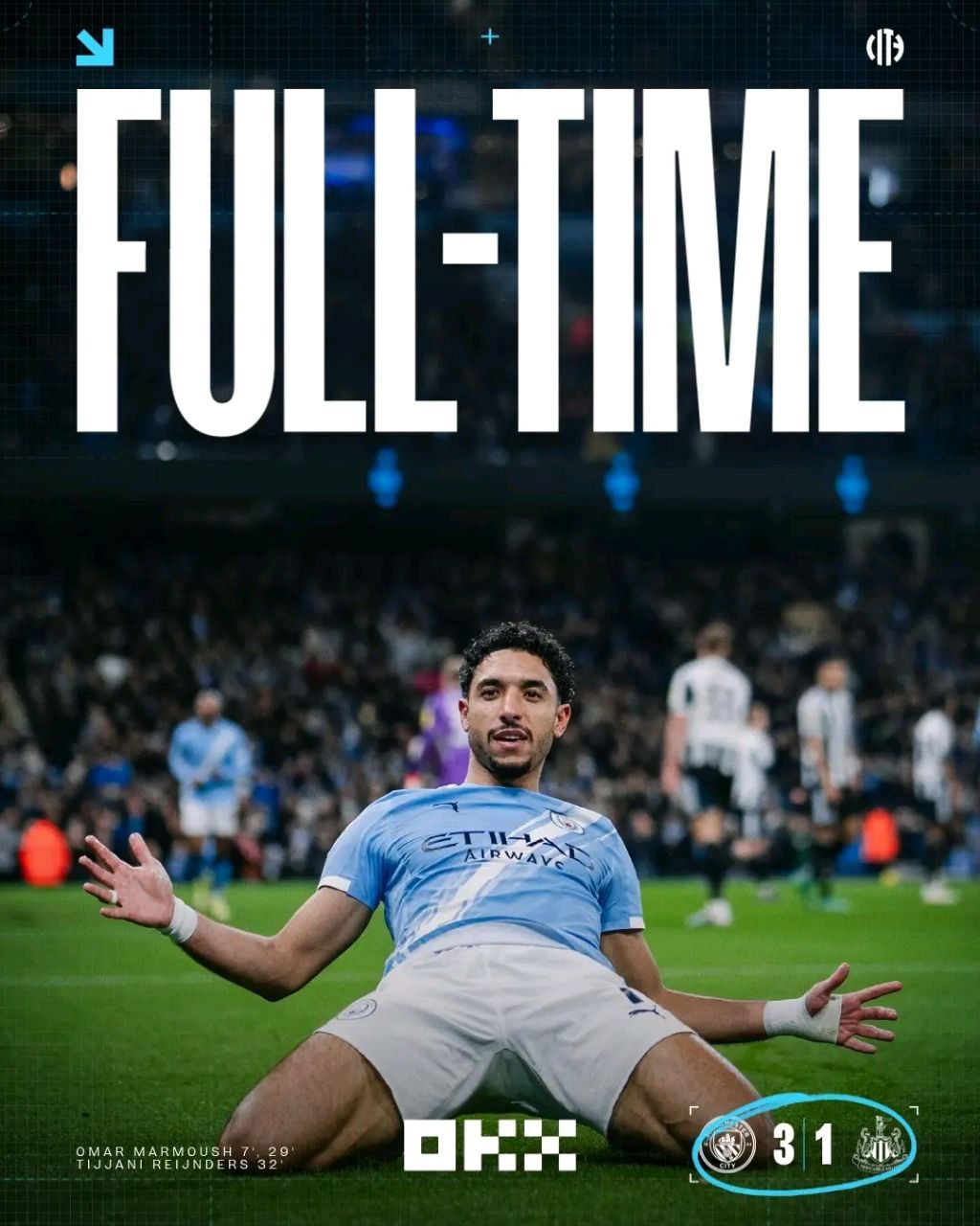 ማምሻውን በኢትሃድ ስታዲየም በተካሄደው ጨዋታ ኦማር ማርሙሽ ሁለት ግቦችን ሲያስቆጥር ቲጃኒ ራያንደርስ ቀሪዋን ጎል ከመረብ ጋር አገናኝቷል።