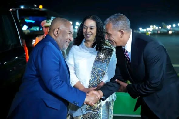 ፕሬዚዳንቱ ቦሌ አለም አቀፍ ኤርፖርት ሲደርሱ የሴቶችና ማህበራዊ ጉዳይ ሚኒስትር ኤርጎጌ ተስፋዬ(ዶ/ር) አቀባበል አድርገውላቸዋል።