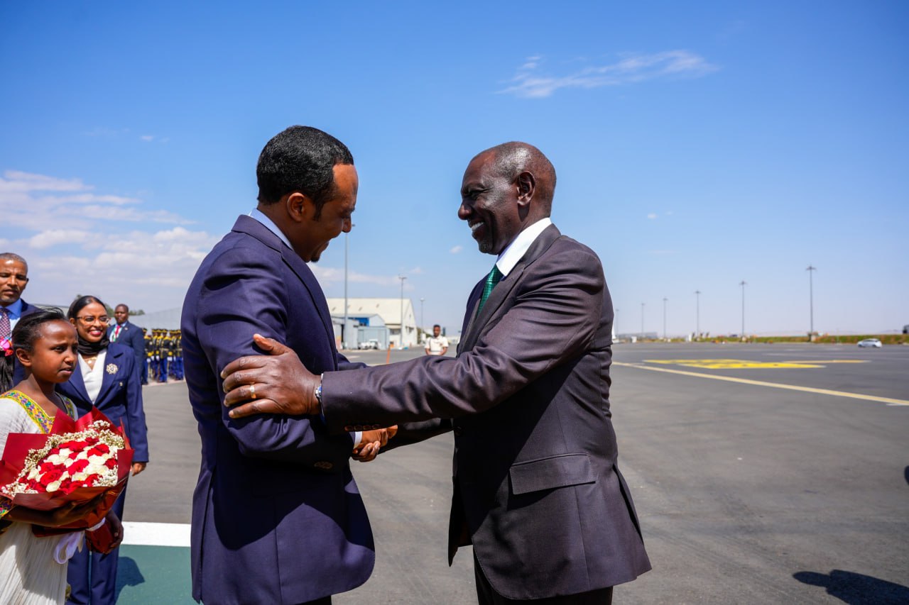 የኬንያው ፕሬዚዳንት ዊሊያም ሩቶ አዲስ አበባ ሲደርሱ የማዕድን ሚኒስትር ኢንጅነር ሐብታሙ ተገኝ አቀባበል አድርገውላቸዋል።