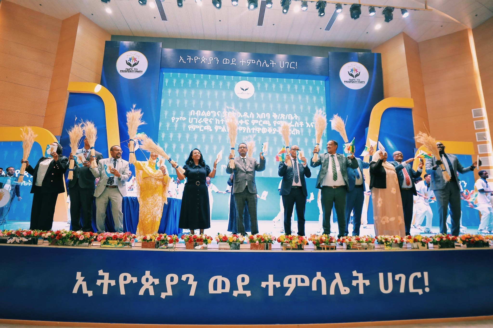 የብልፅግና ፓርቲ የ7ኛው አገራዊና ከተማ አቀፍ ጠቅላላ ምርጫ ማኒፌስቶን እና የምርጫ ምልክት የሆነው "የስንዴ ነዶ" በአዲስ አበባ ደረጃ ይፋ ተደርጓል።