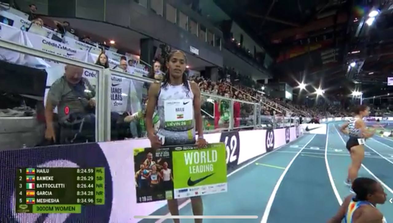 አትሌት ፍሬወይኒ ኃይሉ በዓለም የቤት ውስጥ ውድድር በ3000 ሜትር የዓመቱን ፈጣን ሰዓት በማስመዝገብ አሸፈች