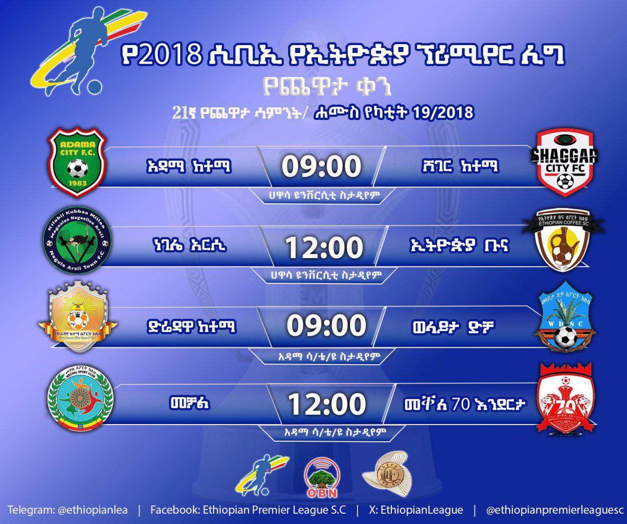 በሌላኛው መርሐ-ግብር አዳማ ከተማ ከሸገር ከተማ ከቀኑ 9 ሰዓት ላይ በሃዋሳ ዩኒቨርሲቲ ስታዲየም ይጫወታሉ።