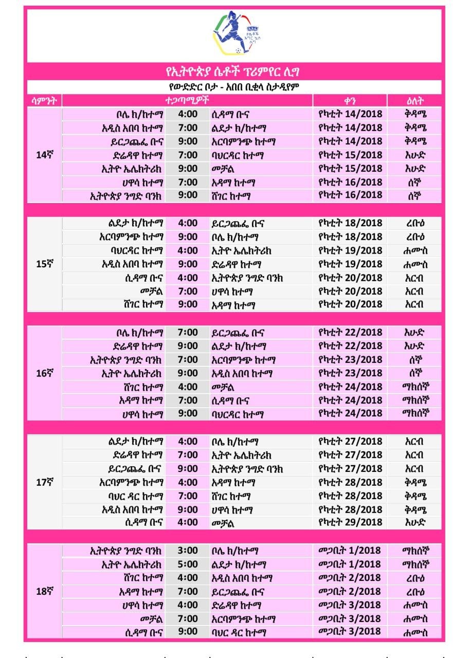 አዲስ አበባ፤ የካቲት 20/2018 (ኢዜአ)፦ የኢትዮጵያ ሴቶች ፕሪሚየር ሊግ 15ኛ ሳምንት መርሐ-ግብር ዛሬ ይጠናቀቃል።