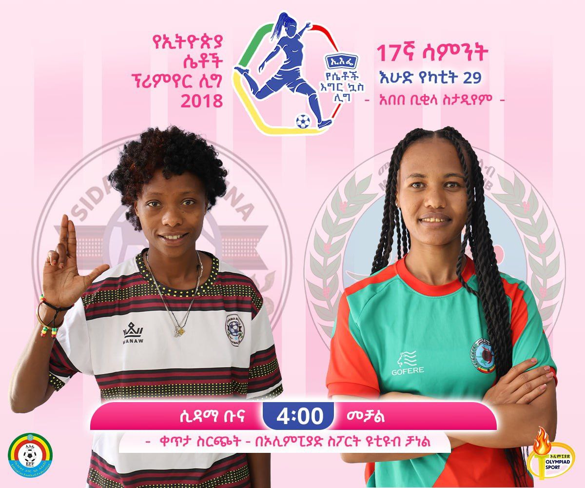 አዲስ አበባ፤ የካቲት 29/2018(ኢዜአ)፦ የኢትዮጵያ ሴቶች ፕሪሚየር ሊግ 17ኛ ሳምንት የመጨረሻ መርሐ-ግብር በሲዳማ ቡና እና መቻል መካከል ዛሬ ይደረጋል።