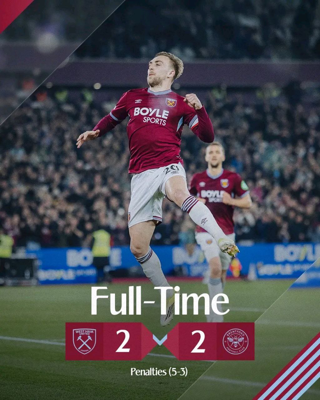 በዚህም ዌስትሃም 5 ለ 3 በማሸነፍ ለሩብ ፍጻሜ ያለፈ የመጨረሻው ቡድን ሆኗል።