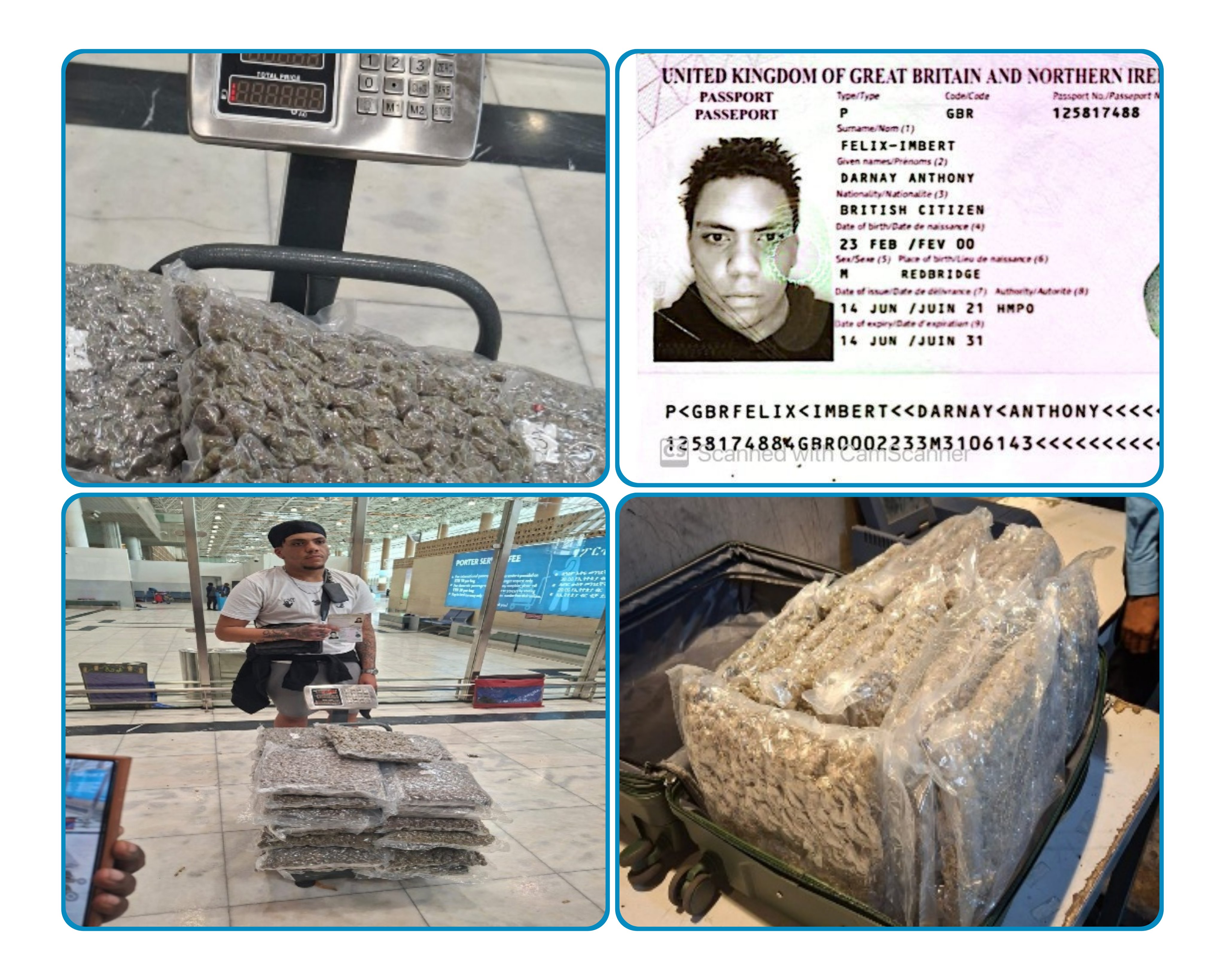 የብሔራዊ መረጃና ደኅንነት አገልግሎት ለኢዜአ በላከው መረጃ እንዳመለከተው፤ ከታይላንድ ባንኮክ ተነስቶ ደቡብ አፍሪካ ጆሃንስበርግ መዳረሻው የሆነ አውሮፕላን በአዲስ አበባ በቦሌ ዓለም አቀፍ አውሮፕላን ማረፊያ ትራንዚት ሲያደርገ በረቀቀ መልኩ በሻንጣ ውስጥ የተደበቀ 37 ነጥብ 6 ኪሎ ግራም የሚመዝን ካናቢስ አደንዛዥ ዕጽ በቁጥጥር ስር ውሏል፡፡ የእንግሊዝ ዜግነት ያለው የአደንዛዥ ዕጹ አዘዋዋሪም ተይዞ ተጨማሪ ምርመራ እየተደረገበት ይገኛል፡፡
