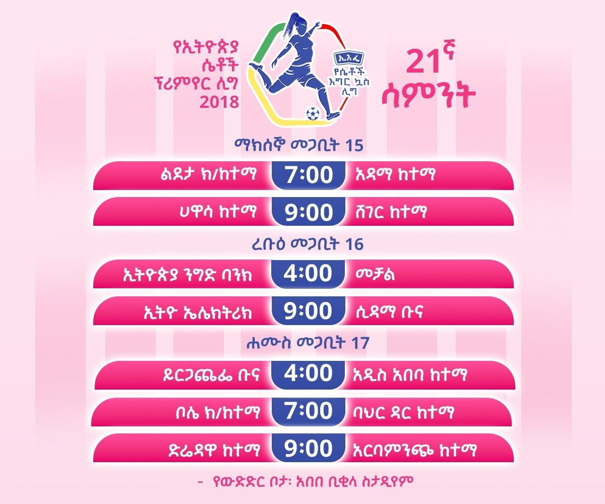 የሴቶች ፕሪሚየር ሊግ የ21ኛ ሳምንት ተጠባቂ ጨዋታዎች - ኢዜአ አማርኛ